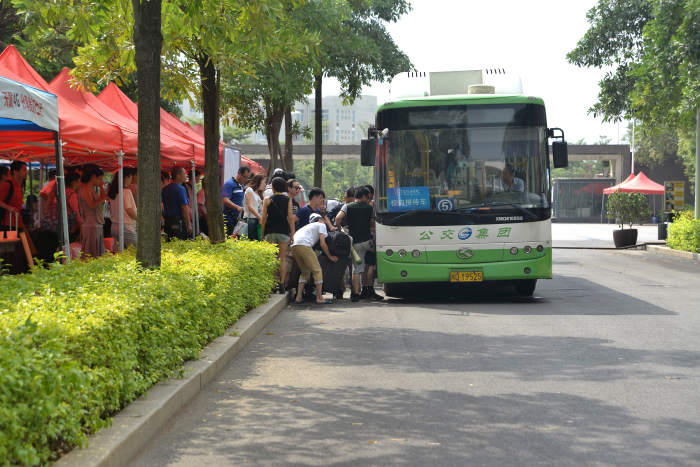 新生报到注册工作主要安排在学校各宿舍楼口。为确保迎新工作的顺利开展,各系(院)领导大清早就赶到报名现场,指挥视察新生报到的准备工作。迎新过程中,为避免校园拥堵,学校专门在二号田径场设置了转运点,由公交车统一将新生及家长运送到各宿舍楼下。每个书院还在书院门口设置了新生接待点、咨询处,在醒目处张贴指示标语,保证接待工作有条不紊的进行。辅导员们全都坚守在一线来回奔走,迎接提前报到的新生,协调处理发现的各种问题,对不适应环境的新生做安抚工作,介绍系部情况,甚至亲自扛起行李送新生去寝室……虽然入学只有短短的一天时间,可是老师们却是连续几天几乎都是早晨“披星”而来,晚上“戴月”而归。
