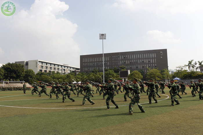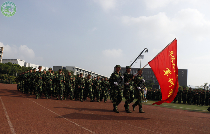 在军训总指挥戴海森教官的指挥下,迎军旗,标兵就位,阅兵仪式正式开始。蔡远利校长亲自检阅参训新生方阵,校长一声声亲切的问候鼓舞着大家的士气。在接下来的分列式检阅中,新生们口号响亮,队列整齐,以昂扬向上的精神,矫健的步伐向主席台的领导们展示多日以来的军训成果。