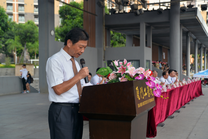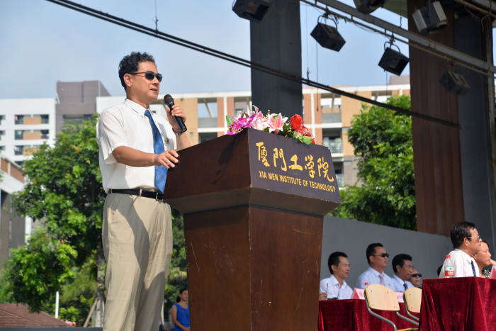 校长蔡远利教授在开学致辞中首先代表厦门工学院全体教职员工欢迎来自五湖四海的新生们,欢迎大家成为厦门工学院的新成员。他对新生们展示的军训成果给予了高度赞扬,相信他们的到来会给学院带来不一样的精彩、成就和荣誉。蔡校长表示厦门工学院办学时间虽然不长,但办学成果显著,这离不开全校师生的共同努力。他结合孔子的儒家思想,与全体新生们分享了他对大学的理解,并给予新生们三句话:明德为先,修身为要,做一个德行高尚的人;敢于担当,为自己负责,不辜负家人期望;转变学习方式,增强主动意识,拥抱精彩大学生活。希望同学们在未来的四年里能充分利用校园文化条件,认真学习,砥砺品格,陶冶情操,为工学院添光,为家人添光,为自己的人生增彩。