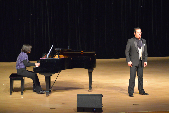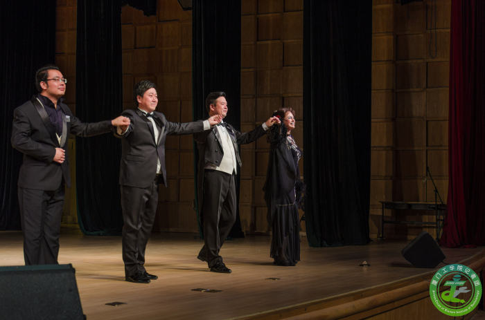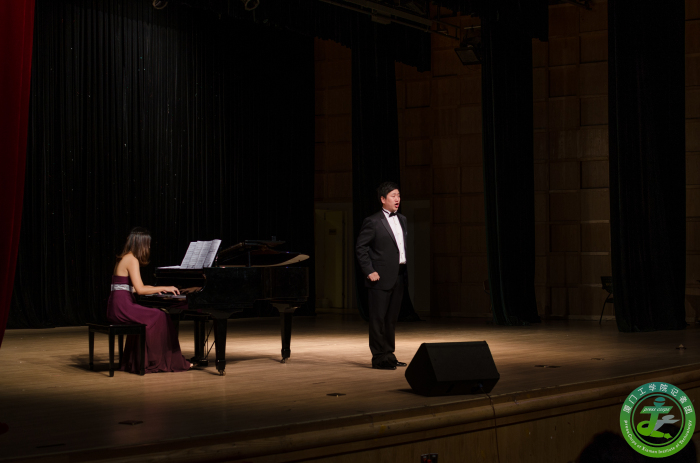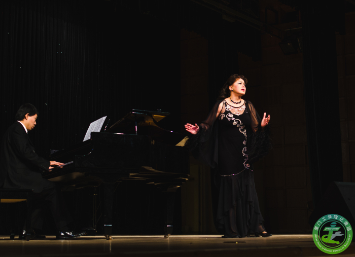 俄罗斯艺术家卡莉克娃.塔芾亚娜.尤里耶夫娜首先登场,她曾两次获得俄罗斯创意作品奖,2010年获得莫斯科国际艺术节一等奖,2013年获得莫斯科下诺夫哥罗德城市艺术奖。此次她为我们带来了《爱上你带来的忧伤》和悦耳动听的《雪姑娘》;之后由福建省艺术家协会会员、厦门歌剧院著名演员石磊老师带来的《谣言诽谤》和《望乡词》更是带动了全场的气氛,使同学们陶醉在音乐的海洋之中;由梁少伟老师带来的《星光灿烂》和《负心人》让同学们真正的感受到男高音歌唱家浑厚声音的魅力。