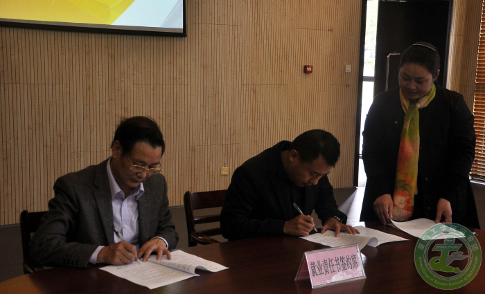 蔡远利校长与建筑系付小利副主任签订2015年就业目标责任书