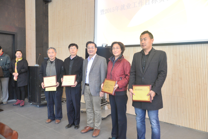 田晓皋副校长随后宣读了《关于表彰2013-2014学年就业先进的决定》,蔡远利校长、田晓皋副校长、何家汉处长、陈炜处长分别为表现突出的先进集体和先进个人颁发了荣誉证书并合影留念。