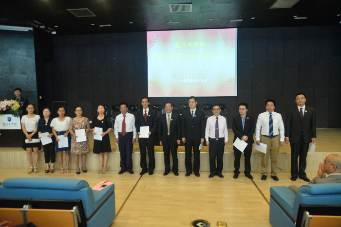 5月19日 下午4时,学校教学教辅单位干部任免大会于图书馆一楼报告厅召开。学校董事长李德文先生,执行董事、监事长李虎先生,校长蔡远利教授,副校长、学校党委常务副书记陈少牧教授,副校长田晓皋教授出席了此次大会。学校各部门、各教学教辅单位负责人,全校教职工参加了此次大会。大会由校长办公室黄水荣主任主持。