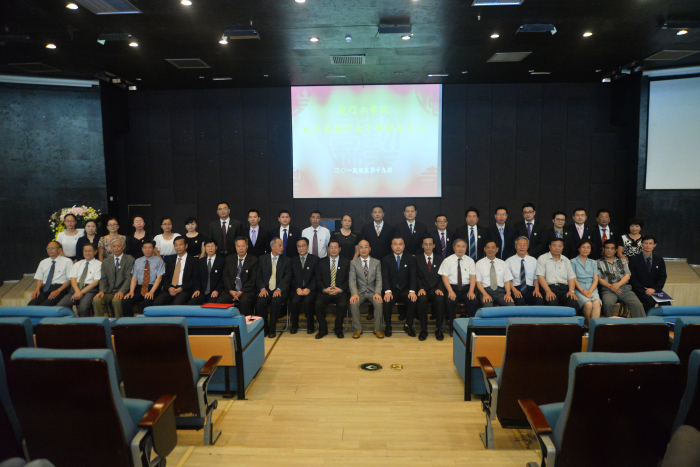 董事长李德文先生,执行董事、监事长李雄虎先生以及校领导与全体新、老干部共同合影留念。