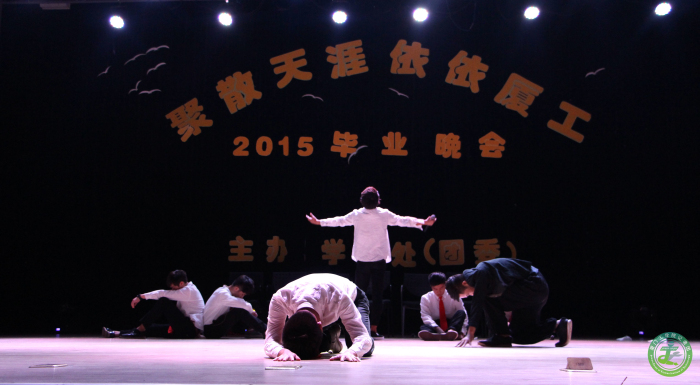 晚会末尾的一段视频,以校长蔡远利教授为代表的恩师为2011级毕业生送上诚挚的祝福。大学四年逆旅的怀想,尽数从这歌舞的忘情律动中迸发。然而岁寒途远,彷徨的是学海里无声的竞逐,是突入未知环境的摸索。那广袤的社会,引人以惶惑和进取之心展望。徐缓下脚步,得见父母宽慰而疲倦的目光,我们投以拳拳的感恩之心。于是曲终人散之际,亦含着笑赠别,未来是鹏程万里。晚会以全场合唱《放心去飞》圆满落下帷幕。