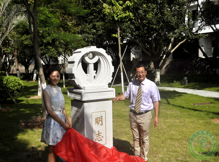 蔡远利校长和范舒丹同学一起为2015届毕业生捐建的雕塑揭幕