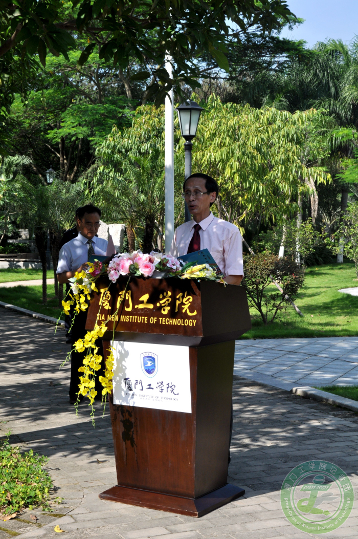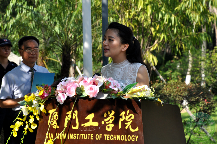蔡远利校长在致辞提到建造校友园的初衷是了为保存每一届厦工学子的美好回忆。这次,园内有幸再添一尊由2015届全体毕业生捐赠的雕像,这尊雕像名为“知识之钥”,既寓意于学科特点、知识力量,又寄意学院及学生向着未来前进、上升,寄托着2015届全体学子对母校的感念知情和深切祝福。他表示作为母校,厦门工学院永远是所有厦工学子的精神家园,学校将始终关注、关心、支持每一个毕业生的发展,也希望毕业生们能常回母校看看。