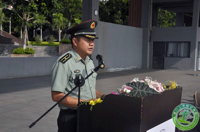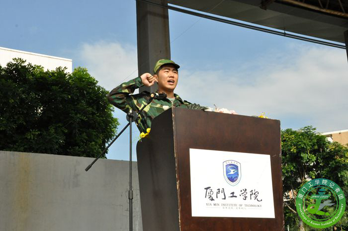 党委常务副书记、副校长陈少牧教授发表动员讲话,向怀揣美好梦想步入大学殿堂的2015级新同学表示热烈的欢迎,并介绍了此次参加厦门工学院军事训练工作的部队。此次承训部队是一支战功卓越的部队,其中有23位军人参加了此次天安门前的大阅兵仪式,此次参训新生有幸接受他们的指导,必将受益匪浅。陈副校长表示军事训练是大学教育的一个重要环节,更是国防教育的需要内容,它有助于培养同学们令行禁止、吃苦耐劳、团结互助的意志品质和爱国爱军、忧国虑民、奉献社会的伟大精神。希望全体新生要以立志成才的激情、战胜困难的决心参加各项训练,以教官为楷模,以严谨的作风为准绳,在栉风沐雨的军事训练中践行“明志、博学、修身、立行”的校训精神,在拉歌打靶、摸爬滚打的宝贵经历中体悟人生、思考未来、积蓄能量,并以今日的磨练铸就明日的辉煌,并希望两周后在阅兵场上看到大家整齐的队列、飒爽的英姿和高昂的士气!