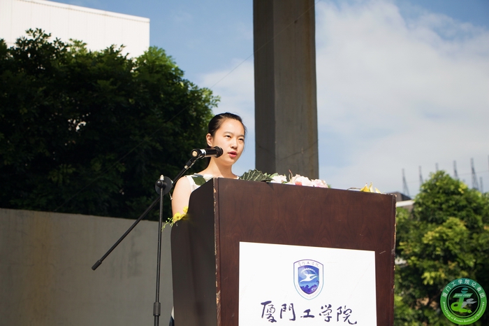 在校生代表罗蕾在致辞中代表全体在校生对2015级新生的到来表示欢迎。她表示军训是大学生活第一项挑战。并与全体新生分享了自己的军训时光与感悟。她相信只要全体新生都能坚持到军训的最后,必将有所收获。