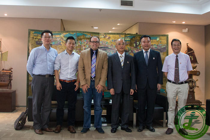 在洽谈会上,蔡远利校长对Vincente Papandrea一行的到来表示热烈的欢迎。随后,他从学校办学规模、专业设置、校企合作、对外交流等方面简要介绍了厦门工学院的基本情况。并表达了希望与美国沃恩航空科技大学开展合作的良好愿望。