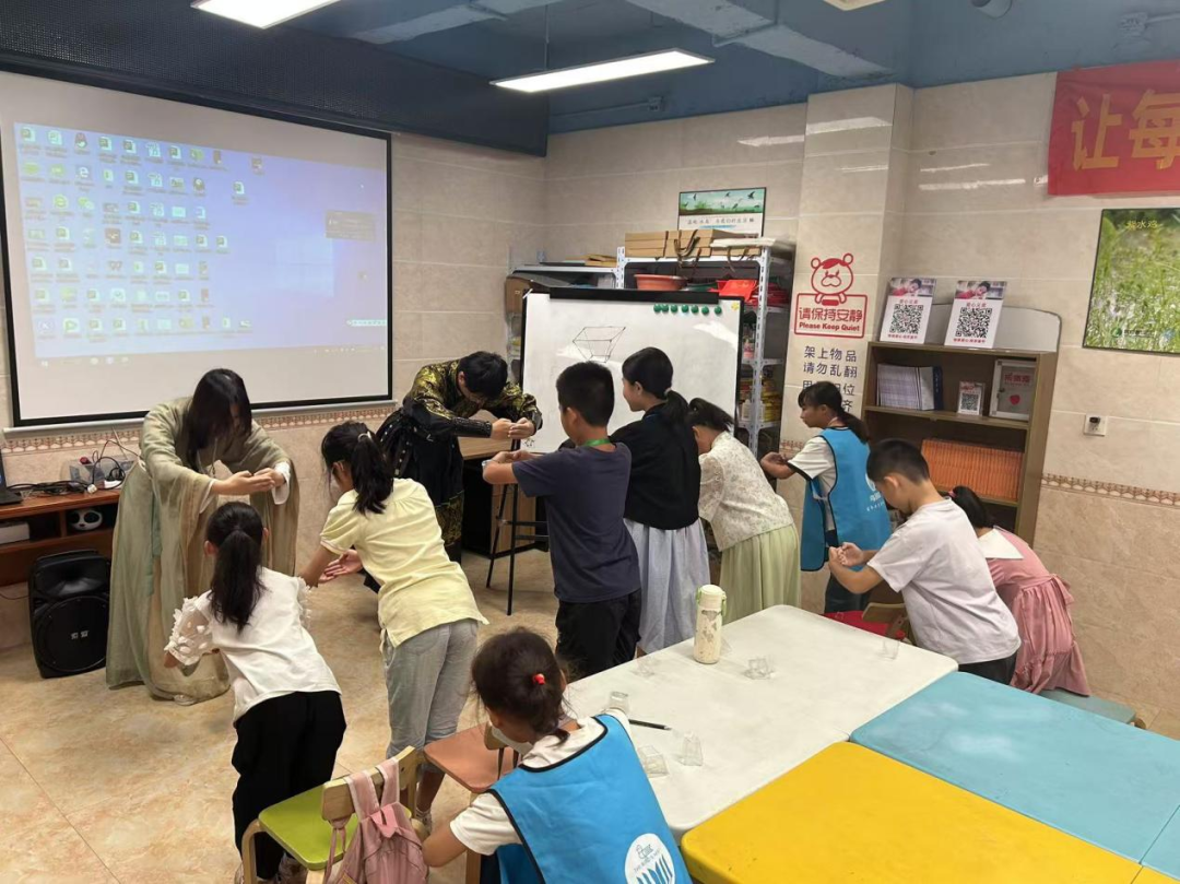 和汉服社合作中,当服饰展现在眼前时他们惊叹连连。“老师,这些衣服好漂亮,穿上它我是不是就像古代的小公子啦?”一个小男孩兴奋地问。志愿者为孩子们讲解汉服的形制、历史以及相关礼仪,带他们领略古典服饰文化的魅力。