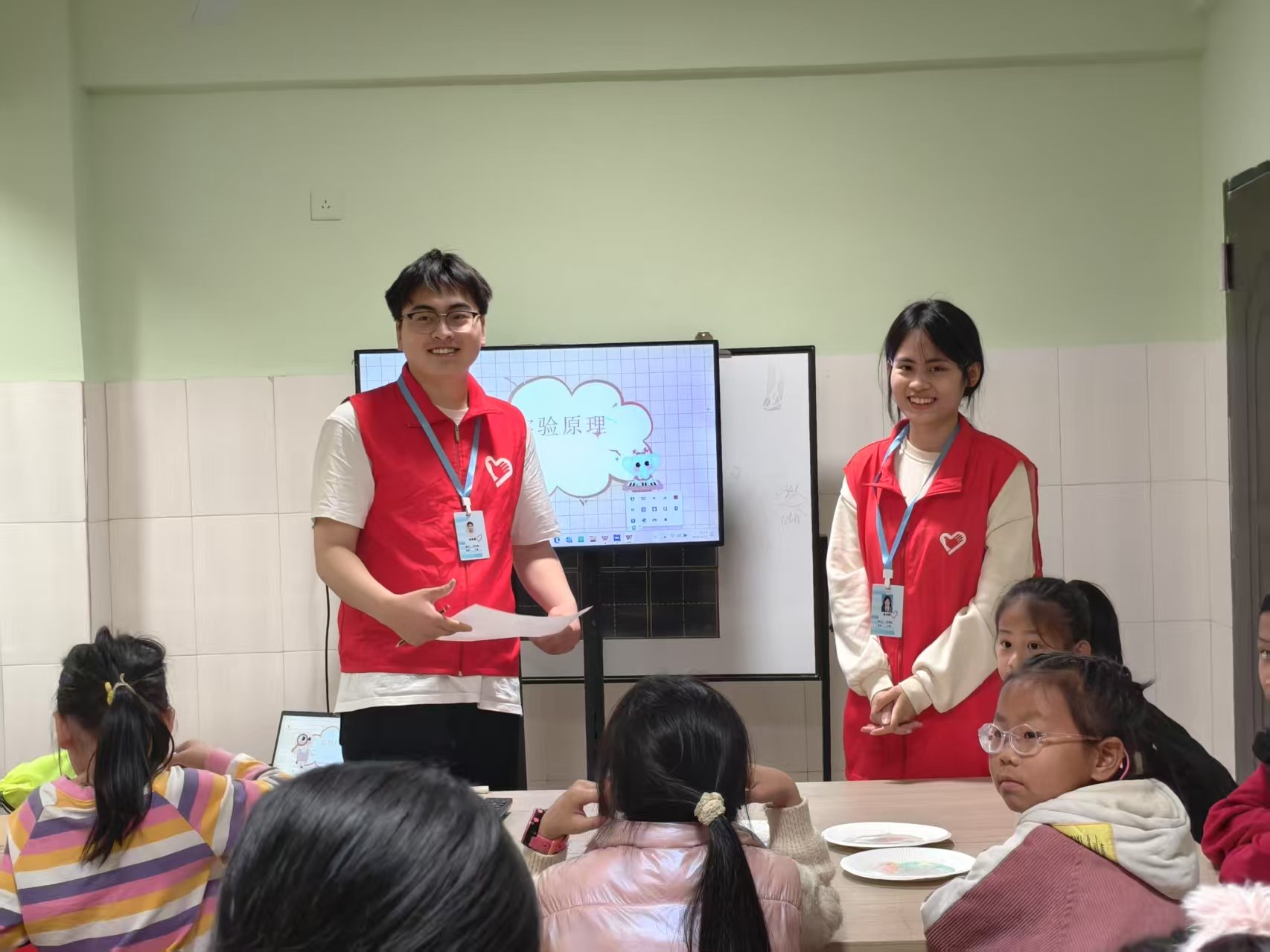 面对小朋友们的好奇与懵懂,起初,志愿者们手忙脚乱,但在开展教学过程中,他们迅速成长,组织活动愈发从容。李增鸿同学常说:“教育的艺术在于鼓舞与唤醒!” 每一次讲解、互动,都点燃着孩子们对科学的热爱,也照亮着志愿者的公益之路。