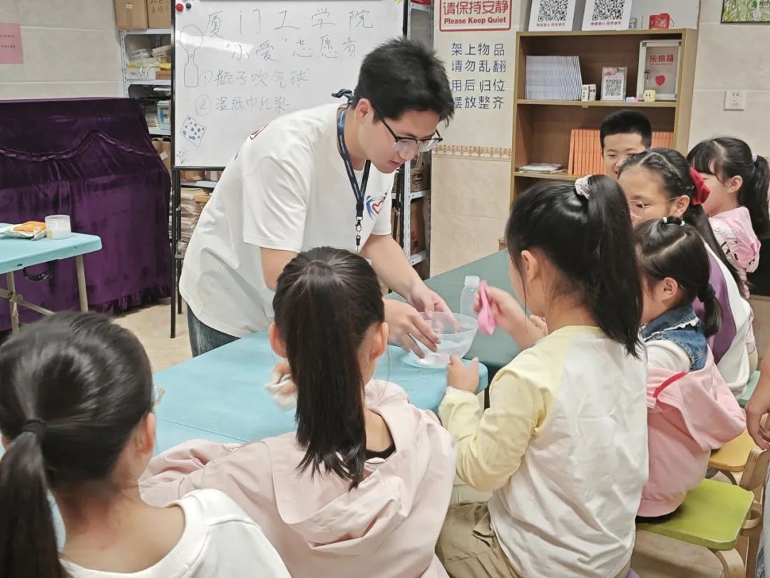 随着义教的推进,“实验重复”问题逐渐凸显出来。22级电子信息工程专业3班戴晓君曾说:“现在的小朋友们学知识的途径繁多,有的孩子早在网上看过实验视频,把原理搞得明明白白;但有的孩子连实验是啥都没听过。这种情况下,我们必须想出解决方案。”她提出孩子们的知识基础有所差异,厦工青协志愿者随即进行创新,让掌握实验的孩子担任“小老师”。“小老师”耐心讲解,带着同伴探索实验,既让自己温故知新,也让初学者眼中燃起好奇之光,用实际行动诠释着互助奉献的志愿精神。