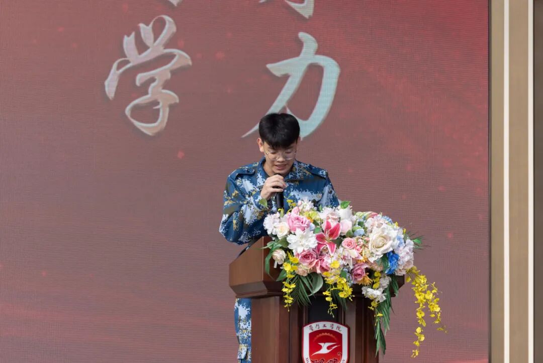 融新学院2025级19班陈派民同学作为新生代表发言。他对在厦门工学院开启人生新篇充满期待,号召同学们将个人成长与国家发展结合,勤奋学习、参与科研,积极参与社团实践,以社会主义核心价值观为指引,做有道德、有担当的新时代青年,期待与同学们携手共进,在厦门工学院挥洒青春汗水,追逐青春梦想,在老师们的陪伴、指导下,成长为更好的自己。