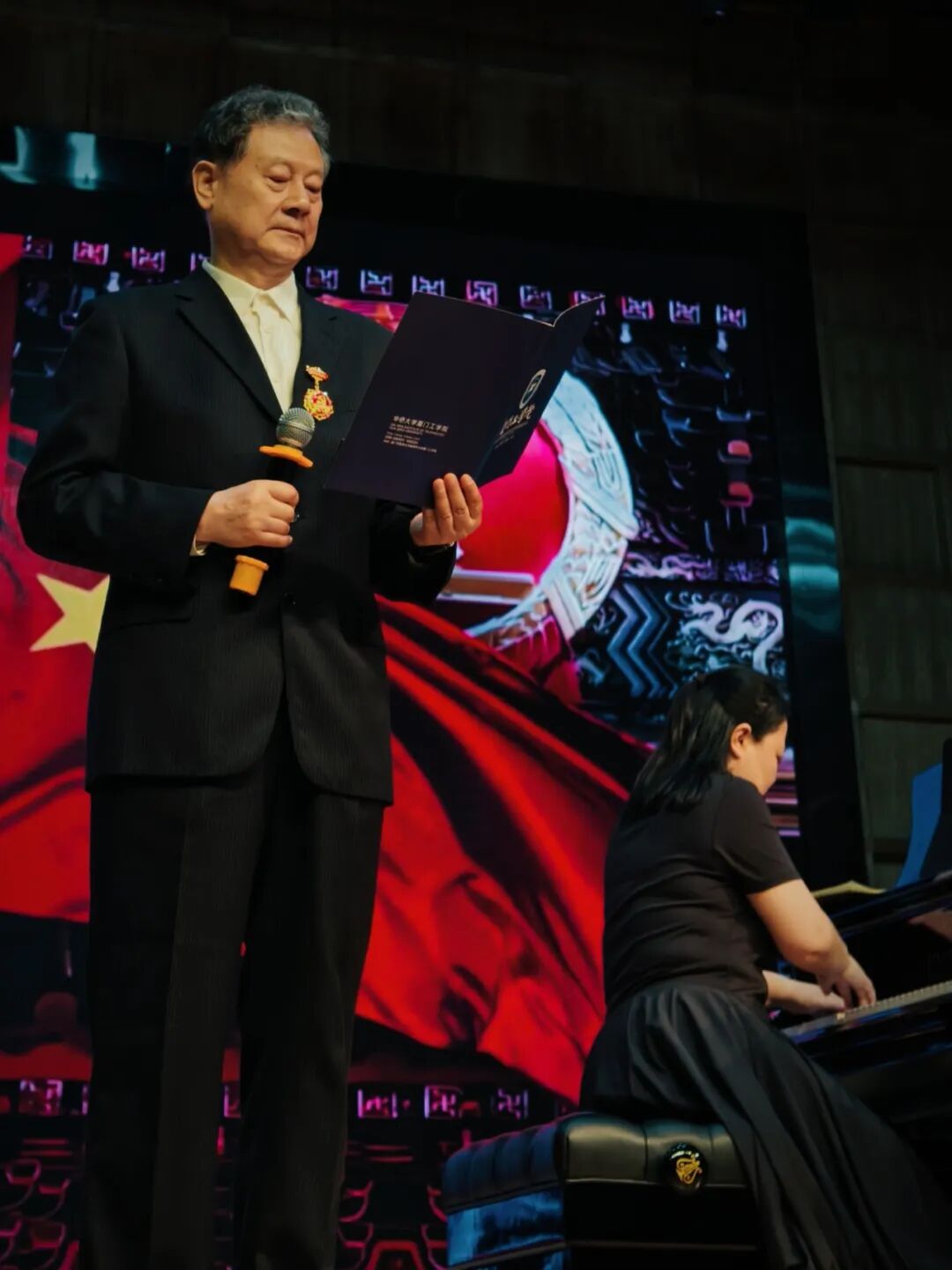 沉甸甸的勋章不仅是光荣的象征,更蕴含着一份特殊的历史见证。其中一枚是来自他母亲、一名抗战军人的“中国人民抗日战争胜利70周年”纪念章,另一枚则是刘志强老师于2024年获颁的“光荣在党50周年”纪念章。当刘志强老师讲述勋章背后的感人故事时,音乐厅内鸦雀无声。