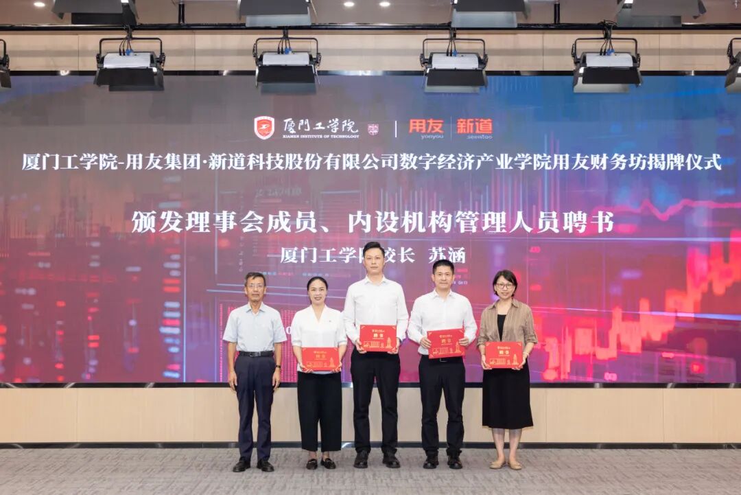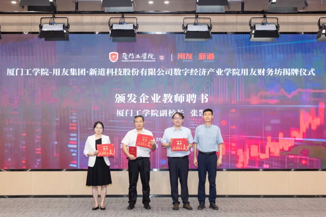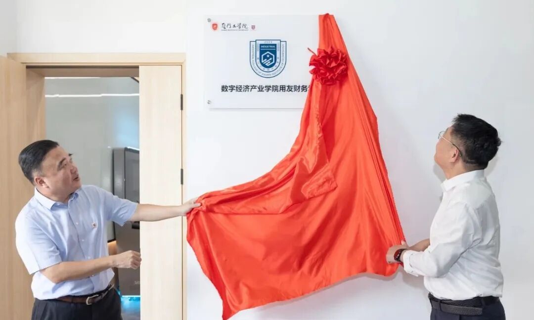 2025年9月29日上午,厦门工学院与用友集团·新道科技合作共建的数字经济产业学院用友财务坊揭牌仪式在立林学术报告厅举行。校企双方代表、师生代表共同见证这一产教融合新平台的启动。