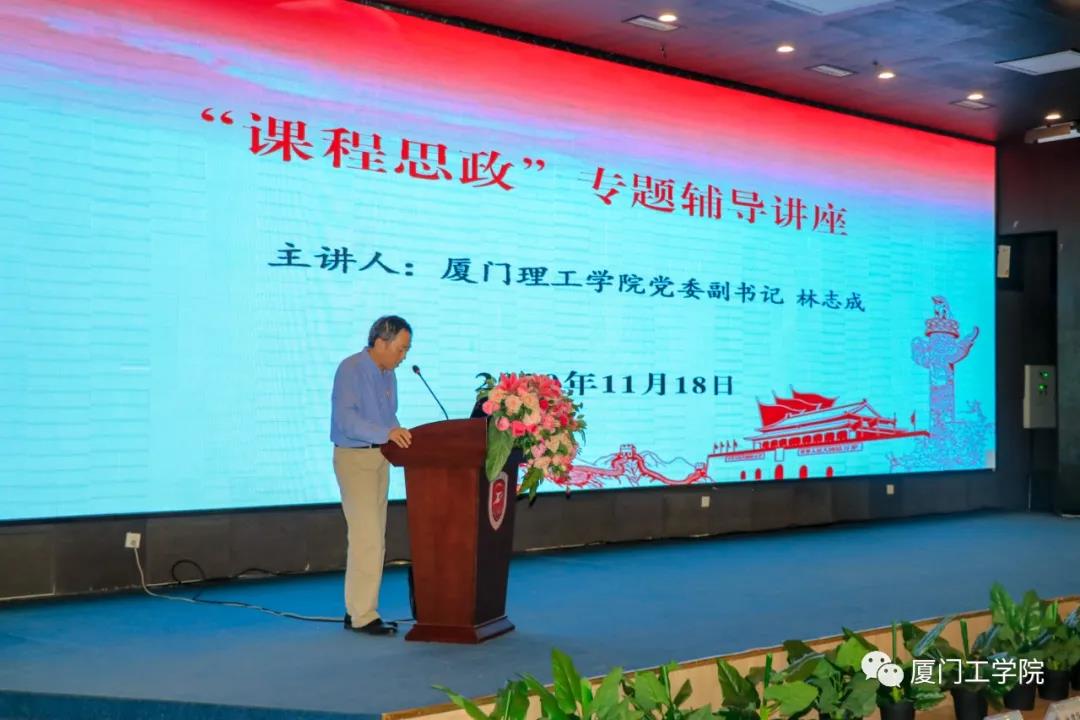 11月18日,开云官网入口app 在图书馆一楼报告厅举行“课程思政”专题讲座。本次讲座邀请到厦门理工学院党委副书记林志成作题为《高等学校课程思政若干要义》的专题讲座。