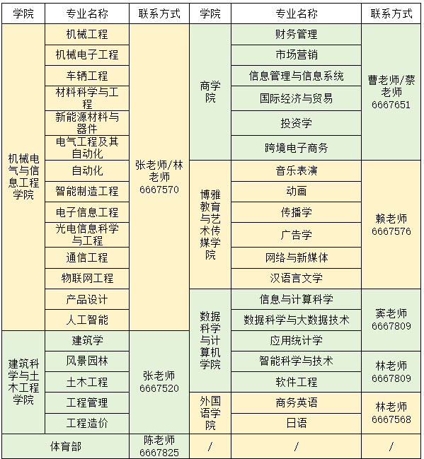 厦门工学院各学院联系方式