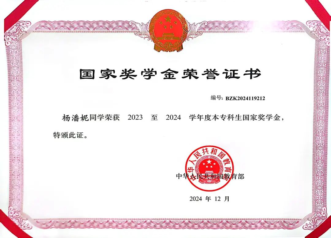在这次讲座上,主讲老师对国家奖学金(简称“国奖”)进行了细致介绍,杨潘妮了解到国家奖学金不仅是对学生学业成绩的肯定,更是对其综合能力的官方认可。台上的讲座仍在进行,而她的内心已经被深深触动。“拿国奖”——这一看上去“雄心壮志”般的目标,在尚显青涩的杨潘妮心底悄然生根。回忆起“明志”的过程,她说:“确定这个目标好像就是一瞬间的事情。”