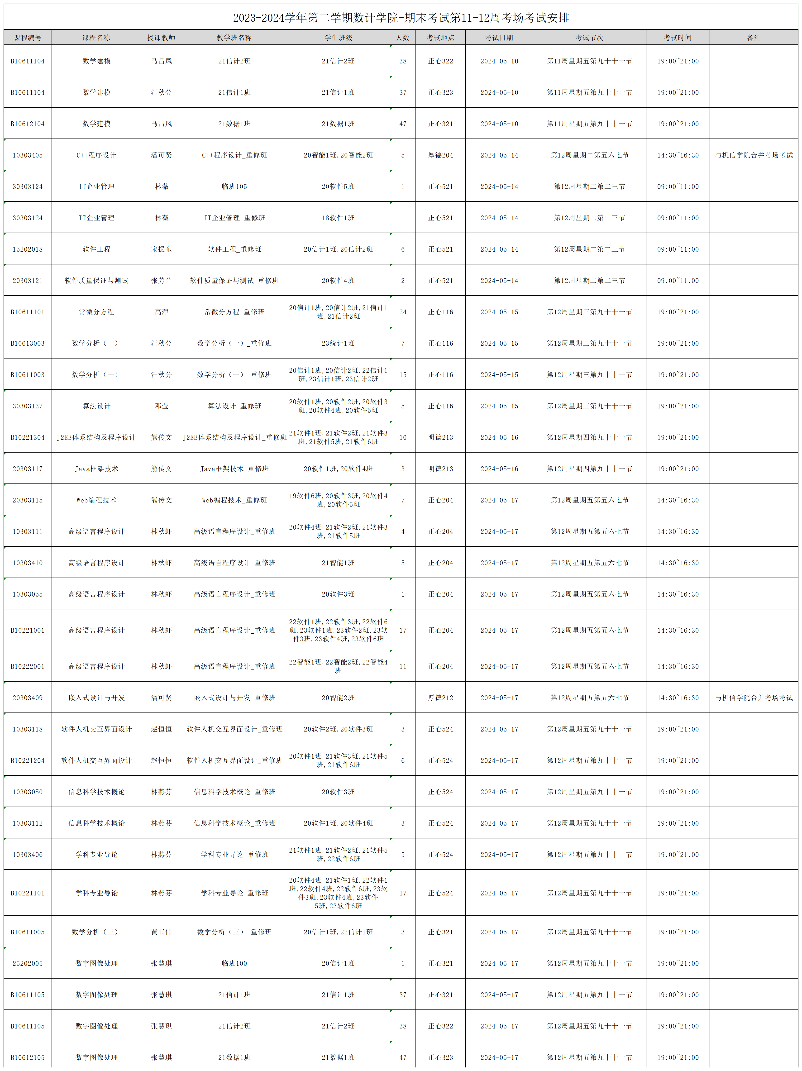 (更新到19周)2023-2024学年第二学期数计学院期末考试(含自学重修)考场安排