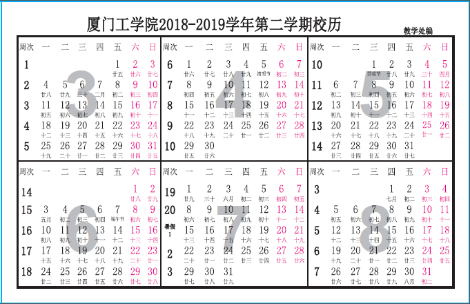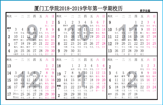 厦门工学院2018-2019学年校历