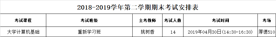 2018-2019学年第二学期第十周考试时间安排表