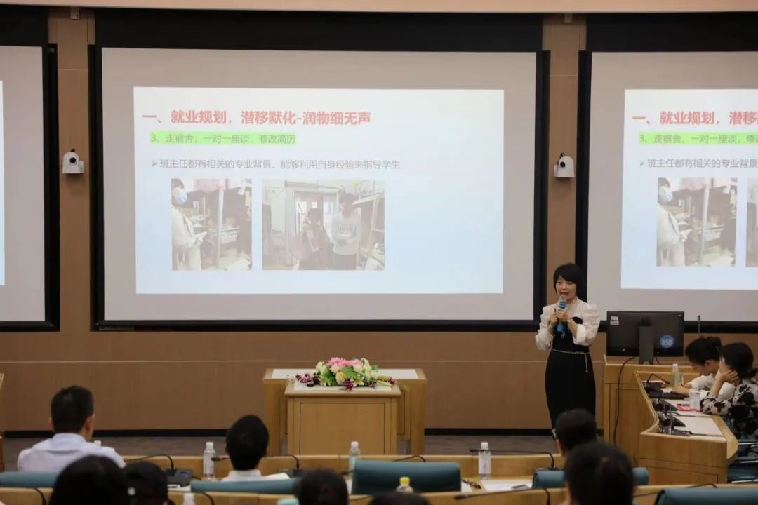 机械科学与电气工程学院的沈杨老师围绕“在专业教育工作中推进就业育人”主题,在专业培养、课程思政、博雅包容三个方面中进行育人工作的经验分享,并贯彻落实“三全育人”的工作机制。