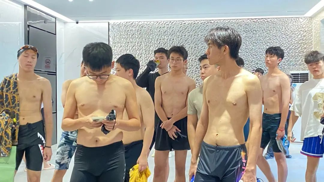 赛前检录时,游泳比赛的紧张气氛中透着秩序,选手们整齐列队,表情严肃,工作人员一丝不苟地核对信息。选手们或轻跳保持身体活力,或调整呼吸缓解紧张,或在心中复习技术动作。