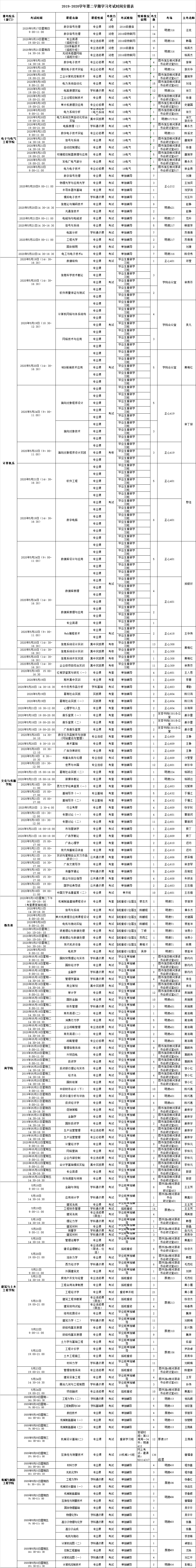 2019-2020学年第二学期第十四周专业课考试时间安排表