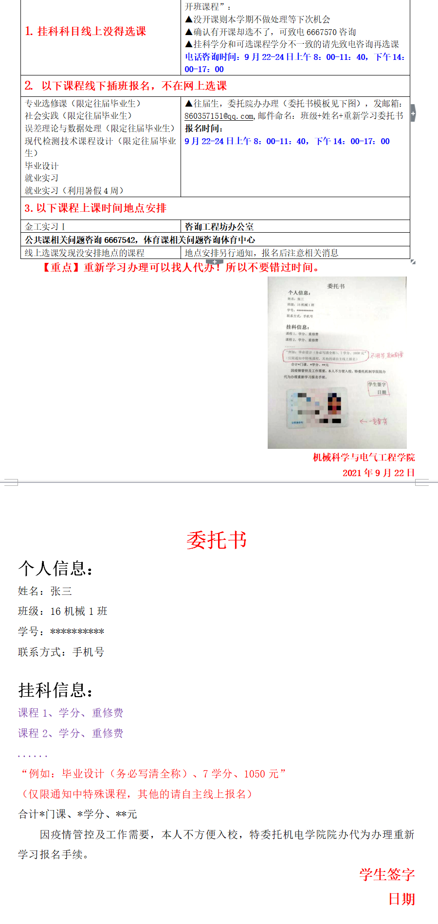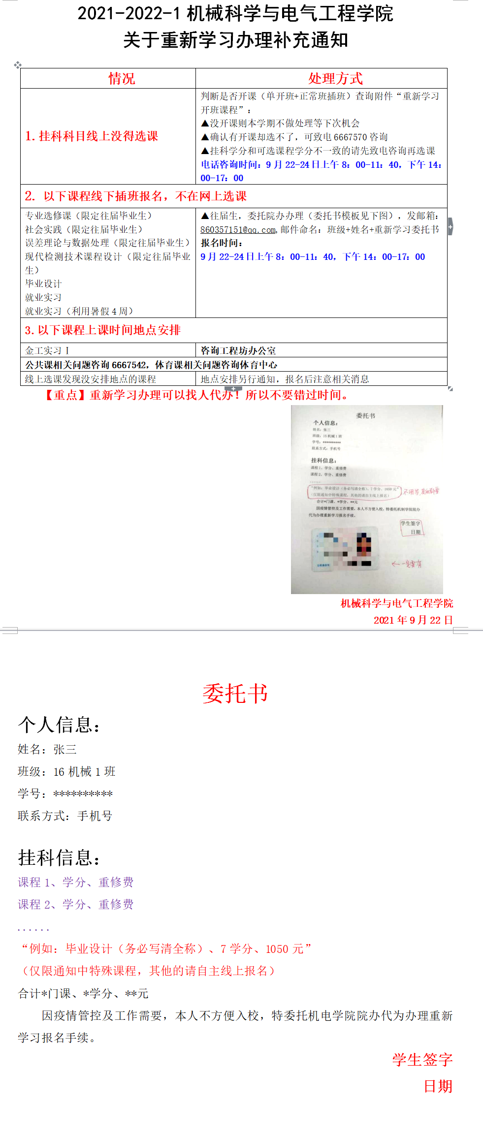 2021-2022-1机械科学与电气工程学院关于重新学习办理补充通知