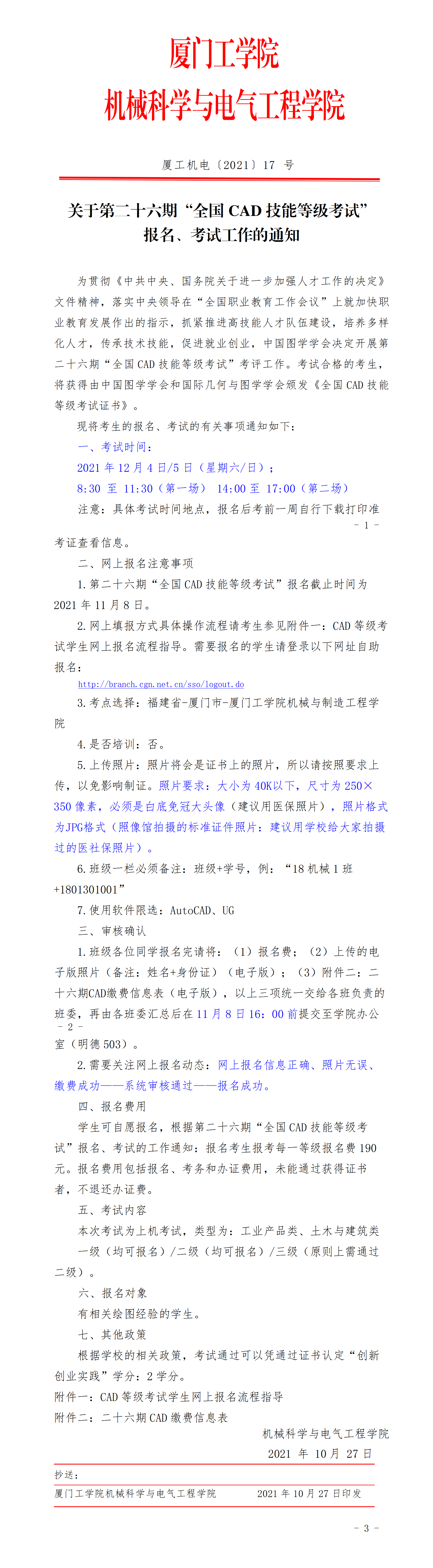 关于第二十六期“全国CAD技能等级考试”报名事项的通知