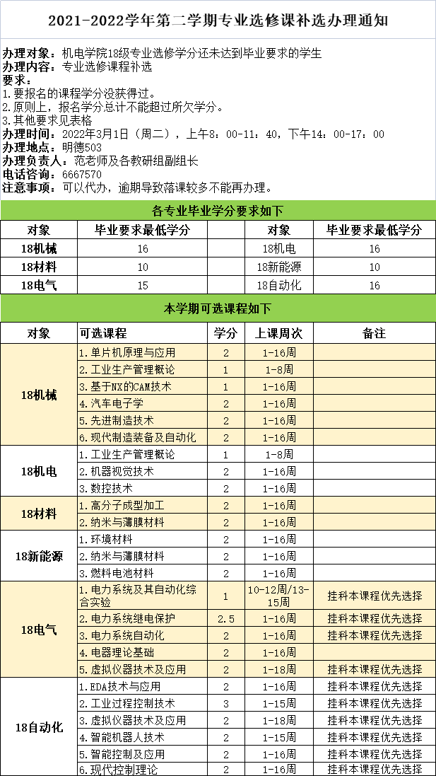 2021-2022-2机电学院专业选修课补选办理通知