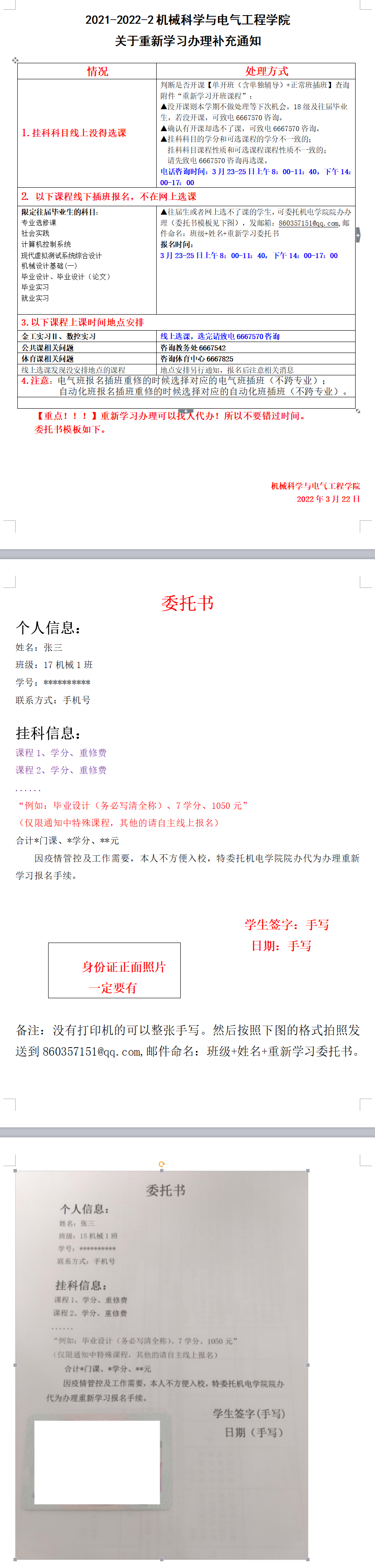 2021-2022-2机械科学与电气工程学院关于重新学习办理补充通知