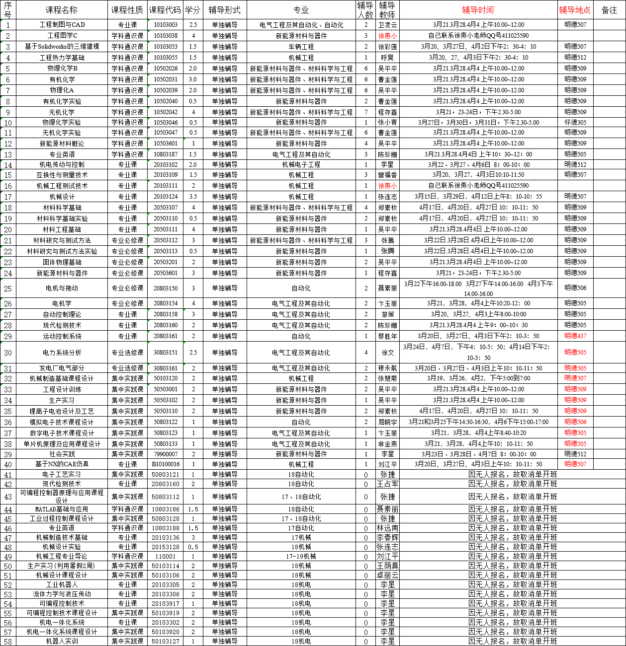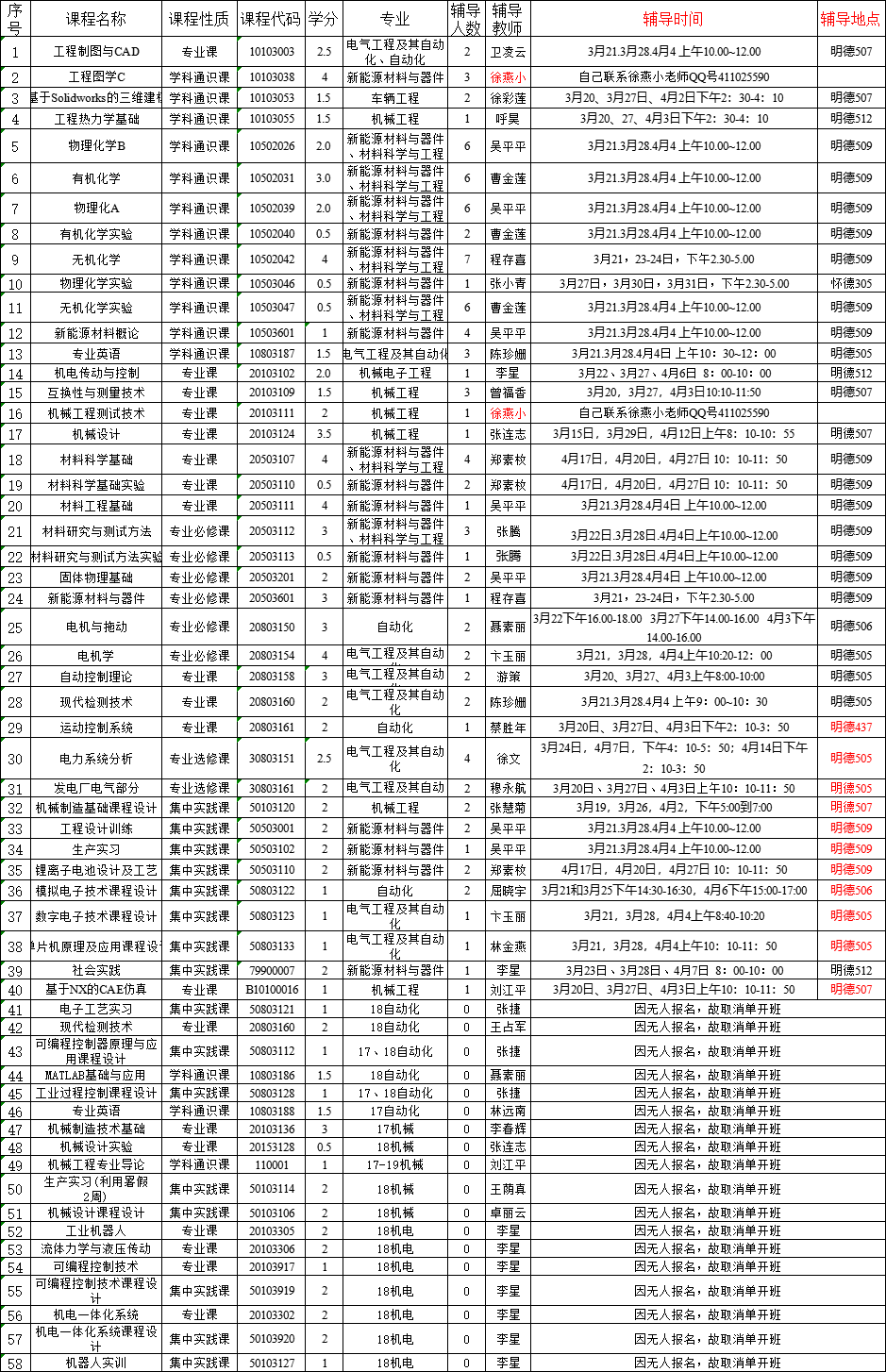 2022-2023学年第二学期单独辅导时间地点