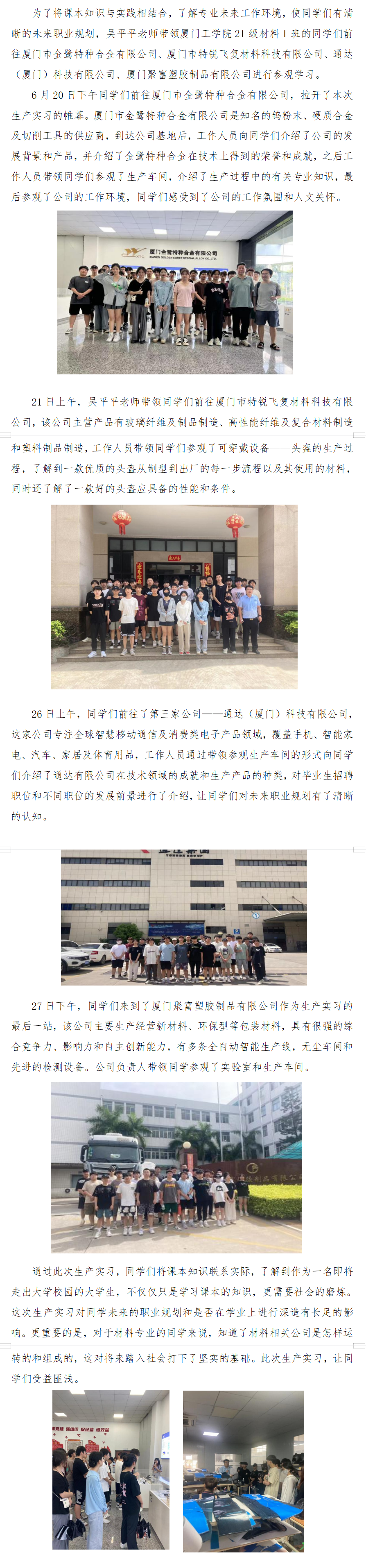 21材料1班开展生产实习,知行结合受益匪浅