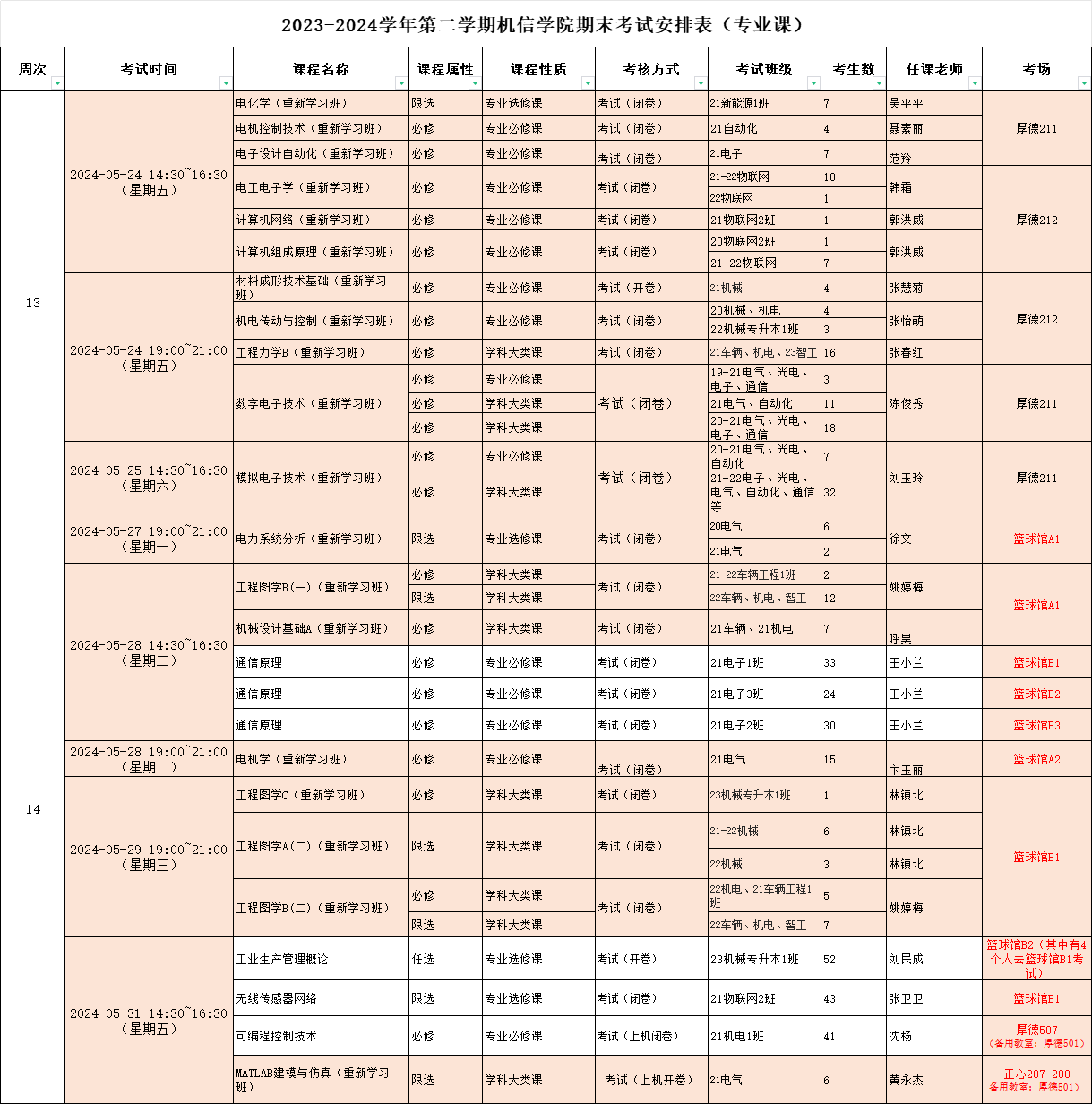 附件: 2023-2024-2学期 专业课期末考试安排表(18-19周)