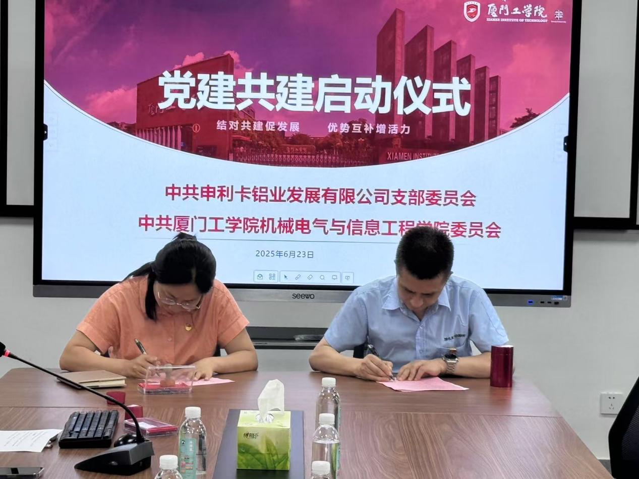 为深化校企合作,推动党建与业务融合发展,中共厦门工学院机械电气与信息工程学院委员会与中共福建申利卡铝业发展有限公司支部委员会于2025年6月23日下午2:00,在明德516举办党建共建启动仪式。双方通过领导讲话、启动仪式、理论联学等环节,携手探索 “党建引领校企发展” 新路径,共谱党建与业务深度融合新篇章!
