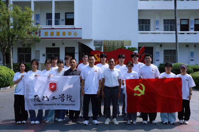 2025年厦门工学院机械电气与信息工程学院暑期“渔光同行·三色赋能”社会实践活动正式启动,各位领导与实践队员共同合影。
