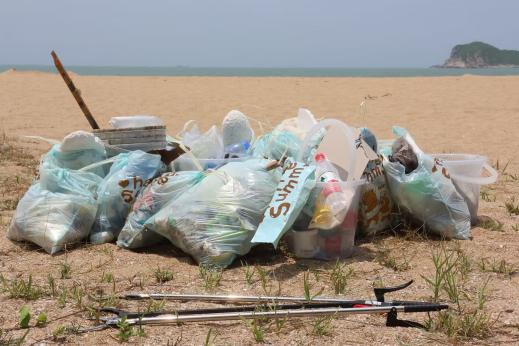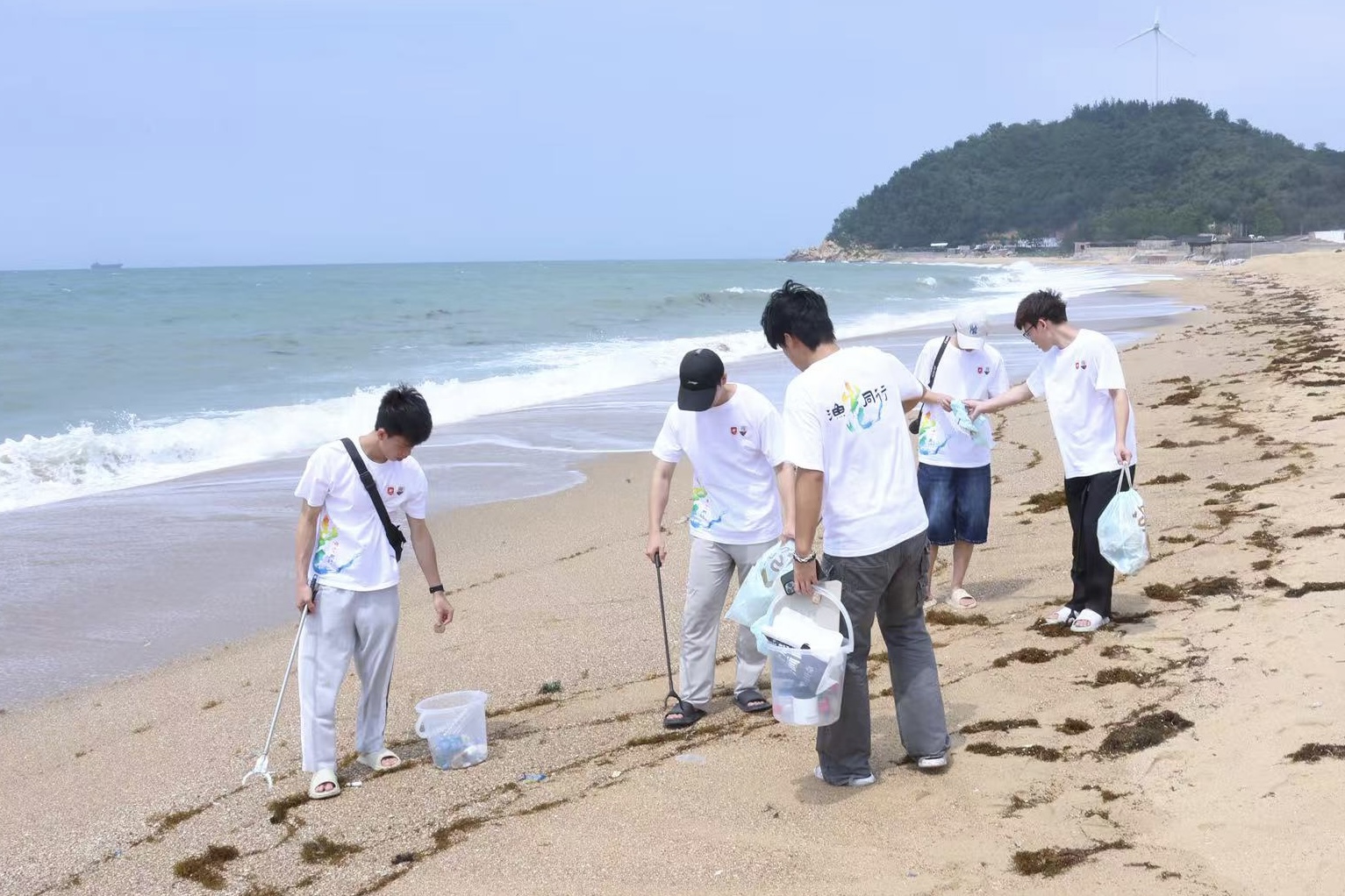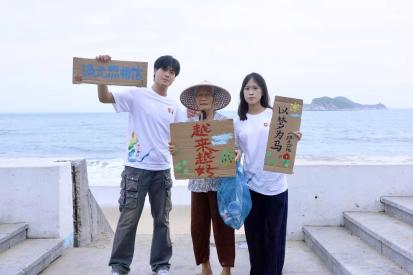 “捡塑慢行”结束时,装满垃圾的袋子与收纳文创材料的容器整齐排列在滩涂上,横幅在海风里扬起。这场从画笔到行动的实践,清理了海岸垃圾,也为文创创作备好了材料,让“做好‘海’的文章” 的嘱托在青春的实干中落到实处。
