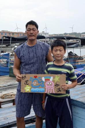 看到渔港边有村民在整理渔网,就站定为他们按下快门;远处渔民和他的儿子正从船上下来,把弯腰劳作的身影和身后归航的渔船一起拍进去;路过民宿时,实践队员们将民俗老板的身影同澳角特色民俗风景记录下来;海上餐厅老板与实践队员们并肩站定,镜头里,她和大家的笑脸与“海上餐厅”招牌一同定格。