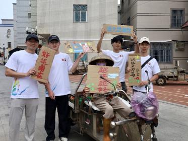 从晨绘横幅凝聚共识,到暮送照片传递温情,第二天的实践让 “绿色赋能” 有了更生动的注脚。从共绘横幅凝聚环保共识,到捡塑行动分类海洋废弃物,再到用回收材料创作渔村文创,每一项都紧扣 “绿色赋能” 与 “蓝色创新”。而暮色中为村民拍照的温情互动,更让 “红色铸魂” 有了具体的落脚点。