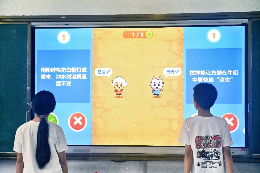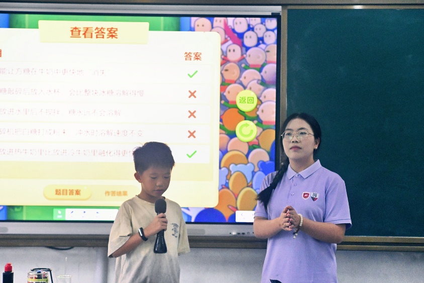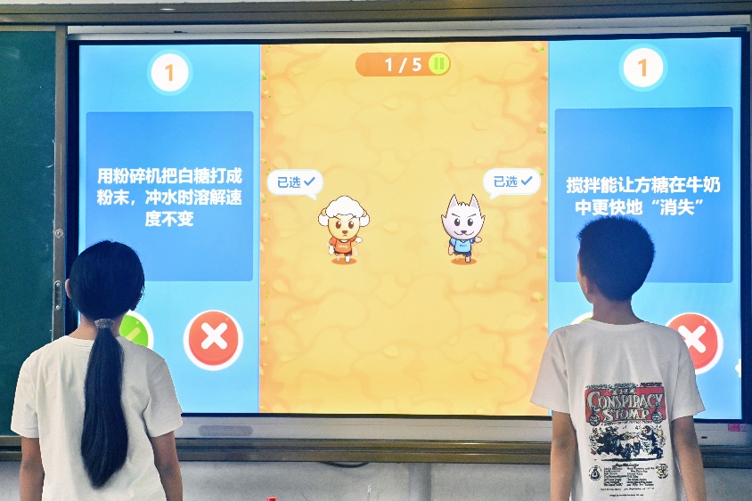“小鸭子的白糖去哪啦?”科学课开场,童趣问题瞬间抓住注意力。老师用游戏串联知识,“溶解大作战”里,孩子们回答糖块消失问题、比拼溶解速度,笑声与思考齐飞。“加热、粉碎、搅拌” 三个关键词,在实验里变得直观生动。粉碎糖果时的认真,观察溶解时的专注,让知识不再是书本上的符号。