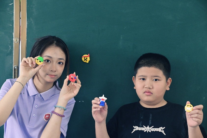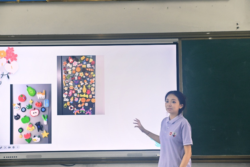粘土课成了“造梦工厂”。带着上次的技巧积累,孩子们挑战冰箱贴创作。黑板上的参考造型刚亮相,创意便如泉涌:搞怪表情包、Q版水果、心仪IP角色,在指尖渐渐成型。老师指导埋入磁铁的小诀窍,孩子们专注又认真。当一件件“天马行空”的冰箱贴诞生,粘土的柔软不再只是触感,更化作创意的翅膀。