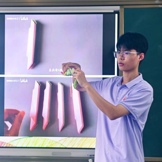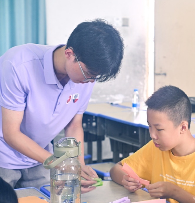 折纸课上,老师借荷花灯开启创作,专注教孩子们折出灵动造型。孩子笑语不断,将童真揉进纸间;实践队员在陪伴里,也因这份纯粹,触摸到手工传承与童心共振的力量,让折纸成为双向奔赴的温暖课堂,传统与童趣共绽光彩 。