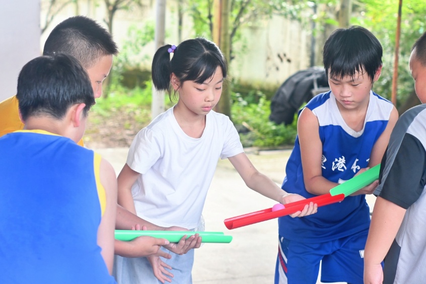 趣味运动会上,实践队员带领孩子们解锁 “步行万里”、“珠行千里” 等项目,在 “巨人脚步” 里同步协作,于 “重走长征路” 中体悟坚韧,拔河时的齐声呐喊,让汗水与欢笑齐飞,也让团队精神在童趣竞赛里深深扎根 。