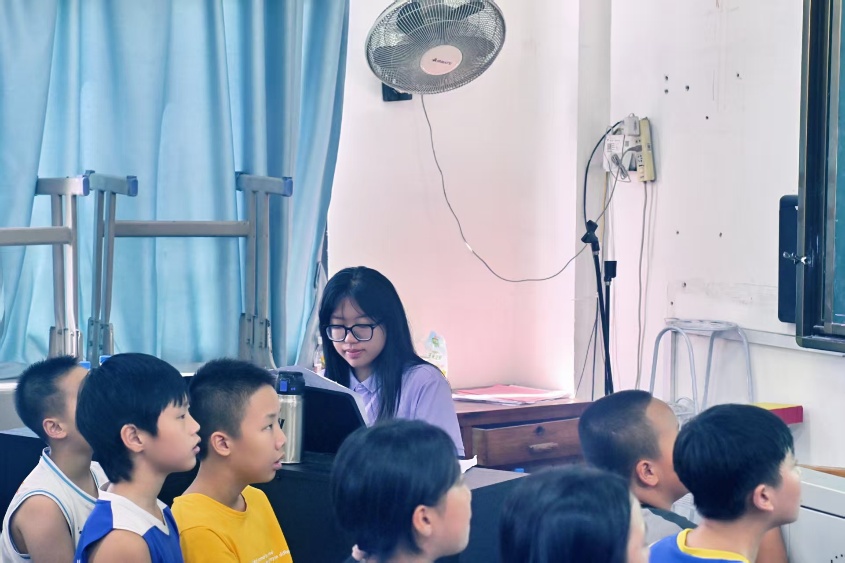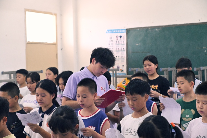 本次朗诵课,实践队员自主创作了融合爱国情怀与乡村特色的诗歌《红星照我去远航》。课程以增强自我认同为核心,通过诗歌朗诵的方式展开,让孩子们在激昂的诵读中感受文字的力量与家乡的美好,提升对自我价值的认知。