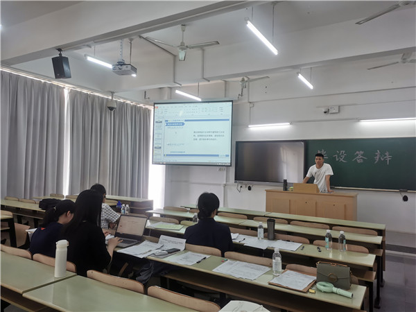 参加答辩的同学早已准备就绪,等待大学期间最后一场极具实战性和挑战性的“考试”。他们在答辩前都已经过了毕业设计(论文)开题、中期检查、论文查重等几个阶段的精心准备。在答辩过程中他们以图文并茂的形式阐述自己毕业设计(论文)。随后,答辩组老师针对毕业设计(论文)提出相关问题,由同学现场回答,这主要是考察同学们对毕业设计(论文)的熟悉程度和对专业知识的掌握程度。同学们回答简明准确,虽然仍然存在不足,但是都得到了老师的充分肯定。