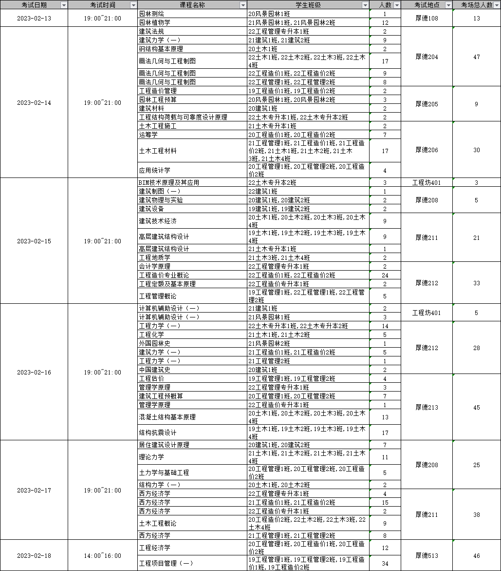 建筑科学与土木工程学院 2022-2023学年第二学期 期初专业课补考安排