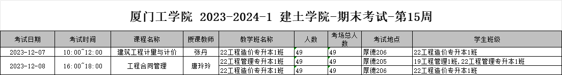 建筑科学与土木工程学院2023-2024学年第一学期期末专业课考试安排表-第15周