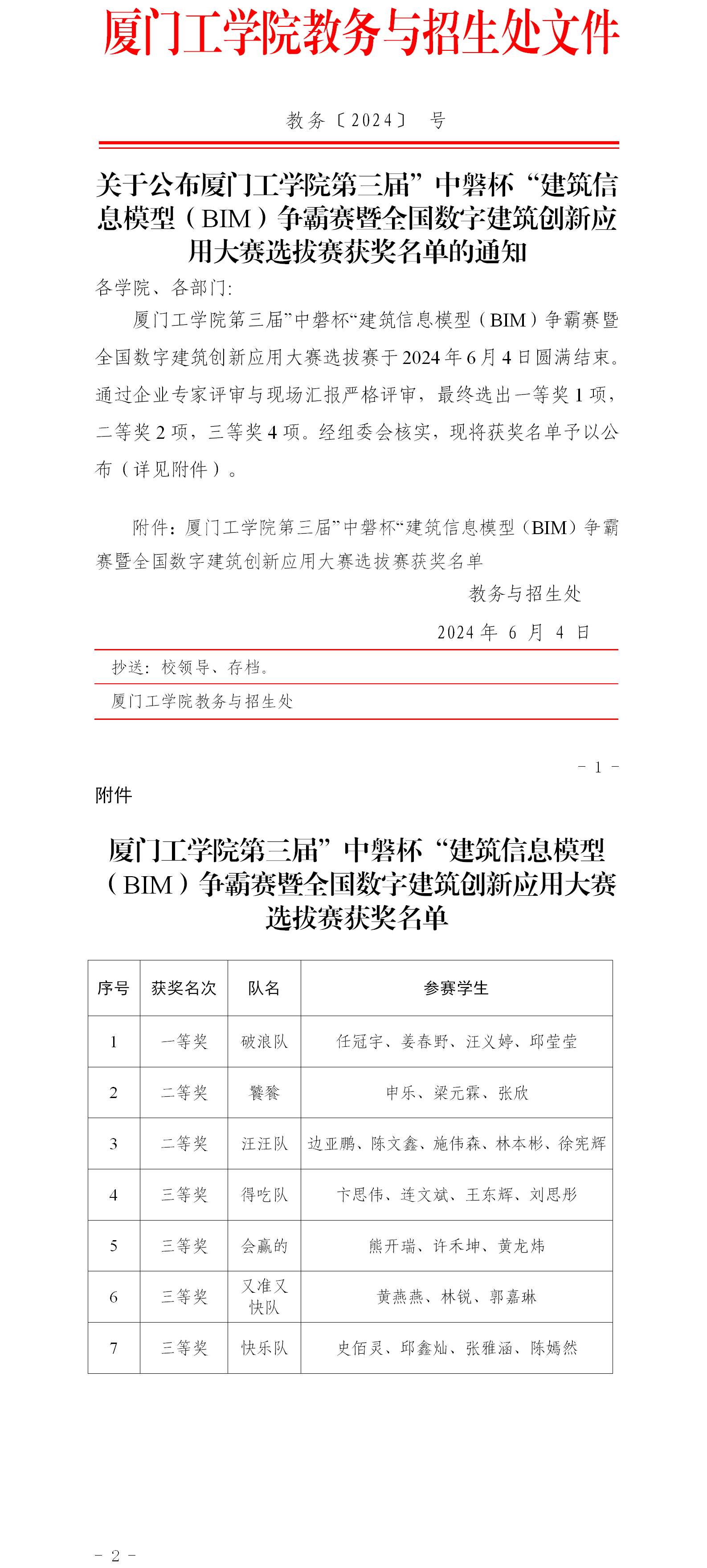 厦门工学院第三届”中磐杯“建筑信息模型(BIM)争霸赛暨全国数字建筑创新应用大赛选拔赛获奖名单公示
